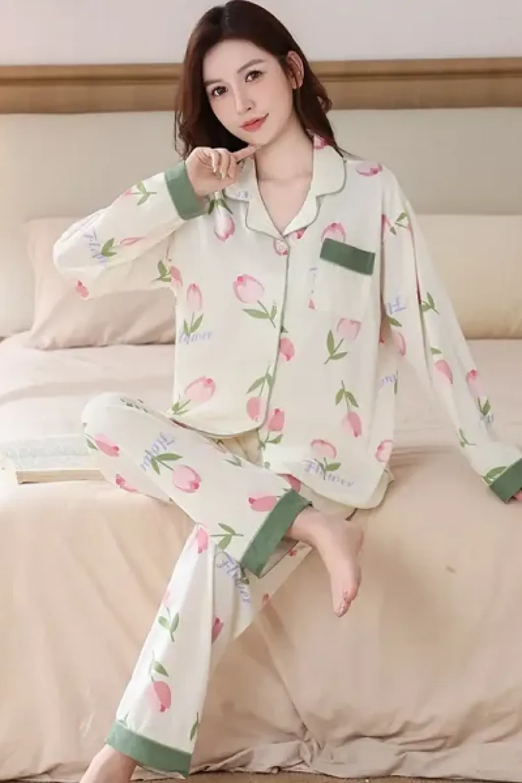 Floral Womens Pajama Set Loungewear Relax Casual Top And Bottom Pajama