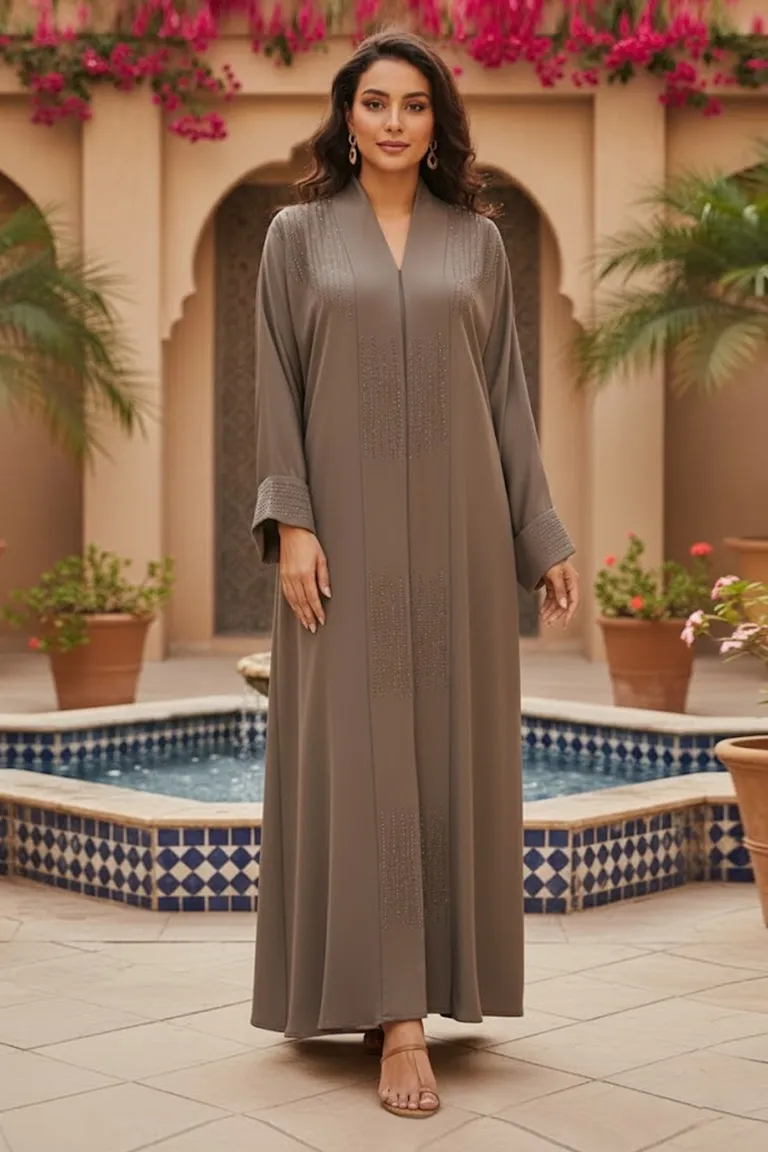 Modern Elegant Brown Abaya Premium Modest Fashion For Women Rhinestone Decorated Muslim Abaya